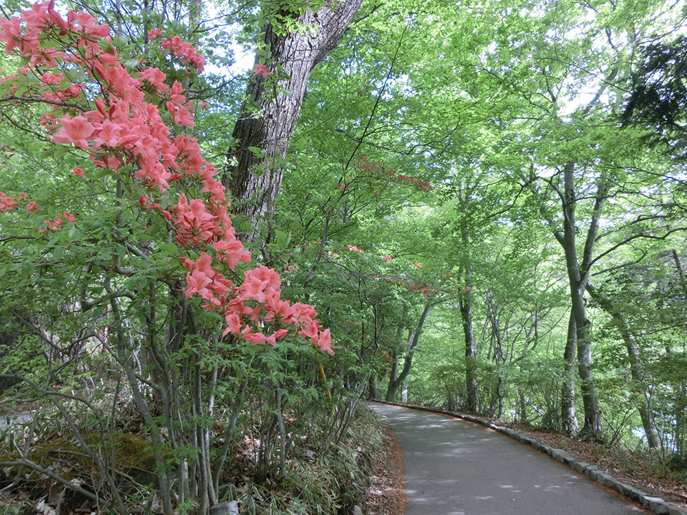 見事な新緑のなか、イワツバメが滝周辺を飛び交い、マイナスイオンをたっぷりとあびて気分もスッキリ。