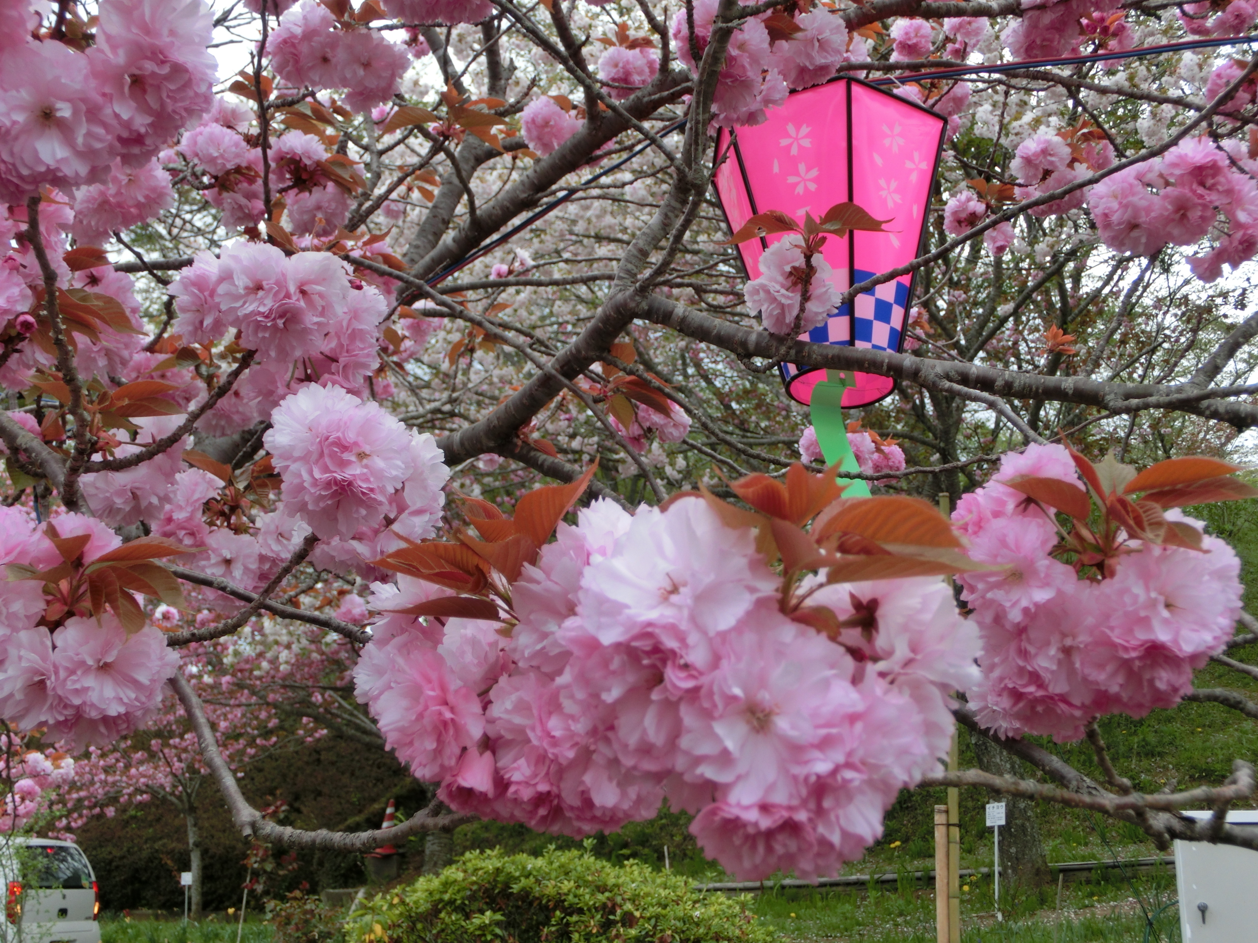 広い公園には八重桜が2000本も植えられていて、ちょうど満開を迎えた桜を、春の優しい陽射しのなか、存分に楽しむことが出来ました。