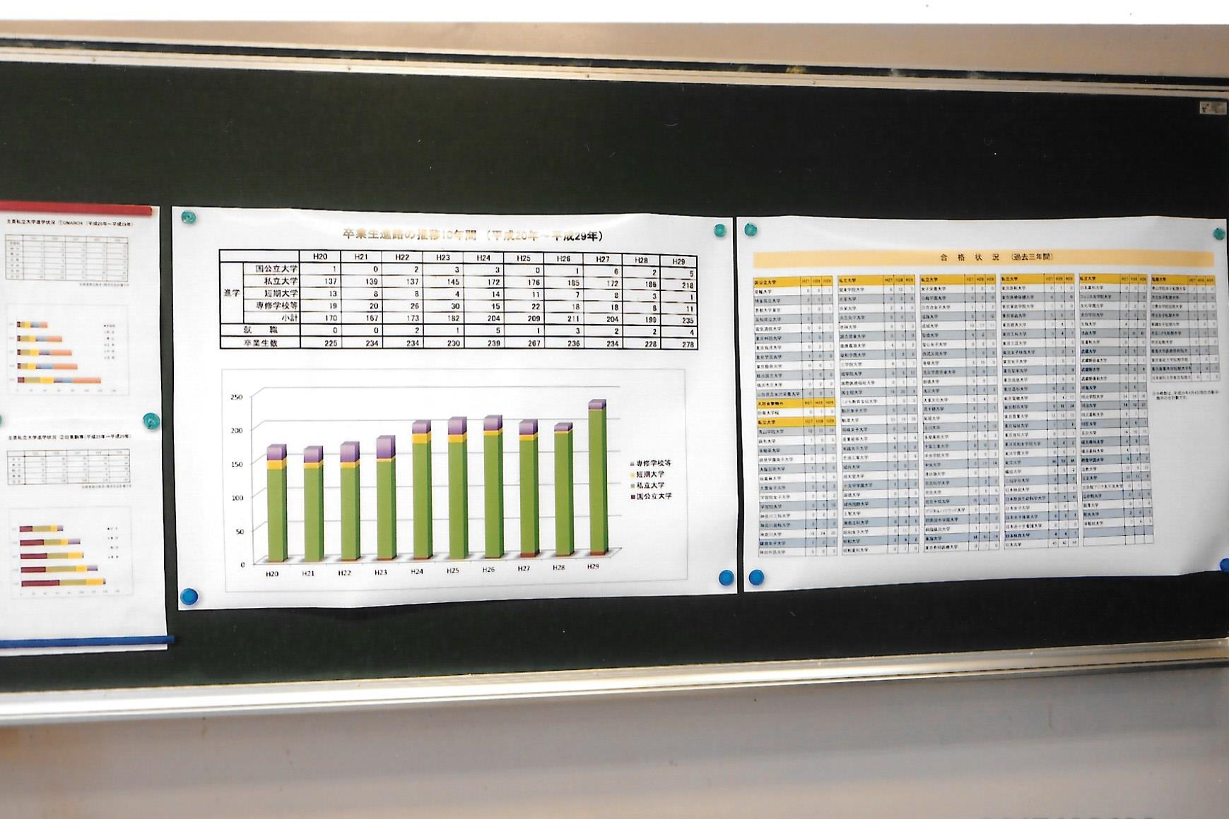 また、二階の学校紹介コーナへは、進学状況を大きく印刷した資料を提供しました。