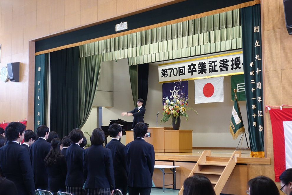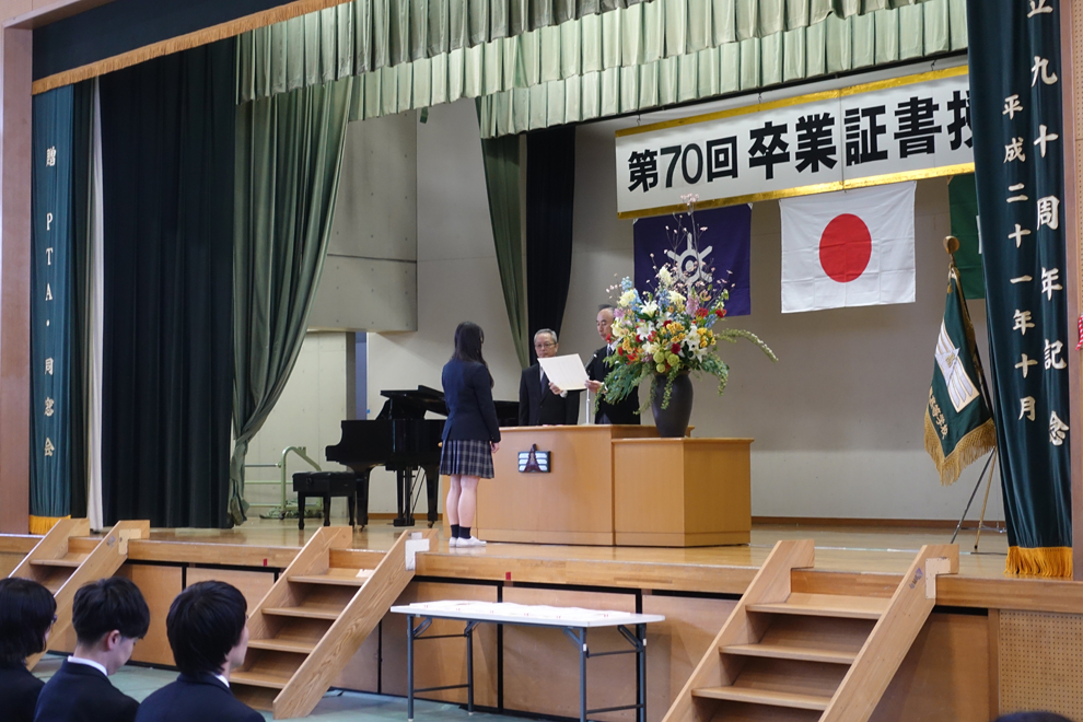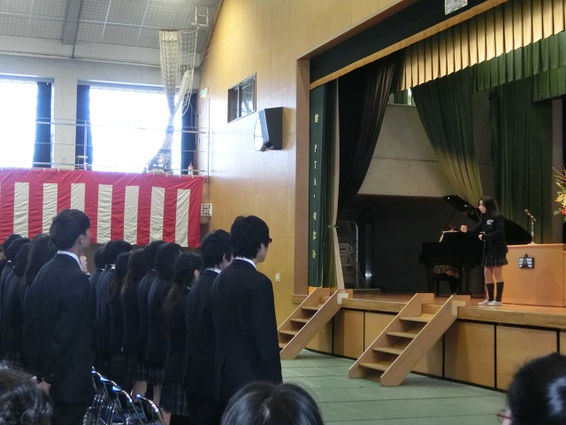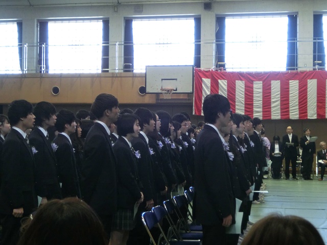 寒い1日でしたが、体育館の中は巣立つ卒業生と送り出す先生たちの熱い思いがあふれ、厳かな中にも心温まる式典でした。