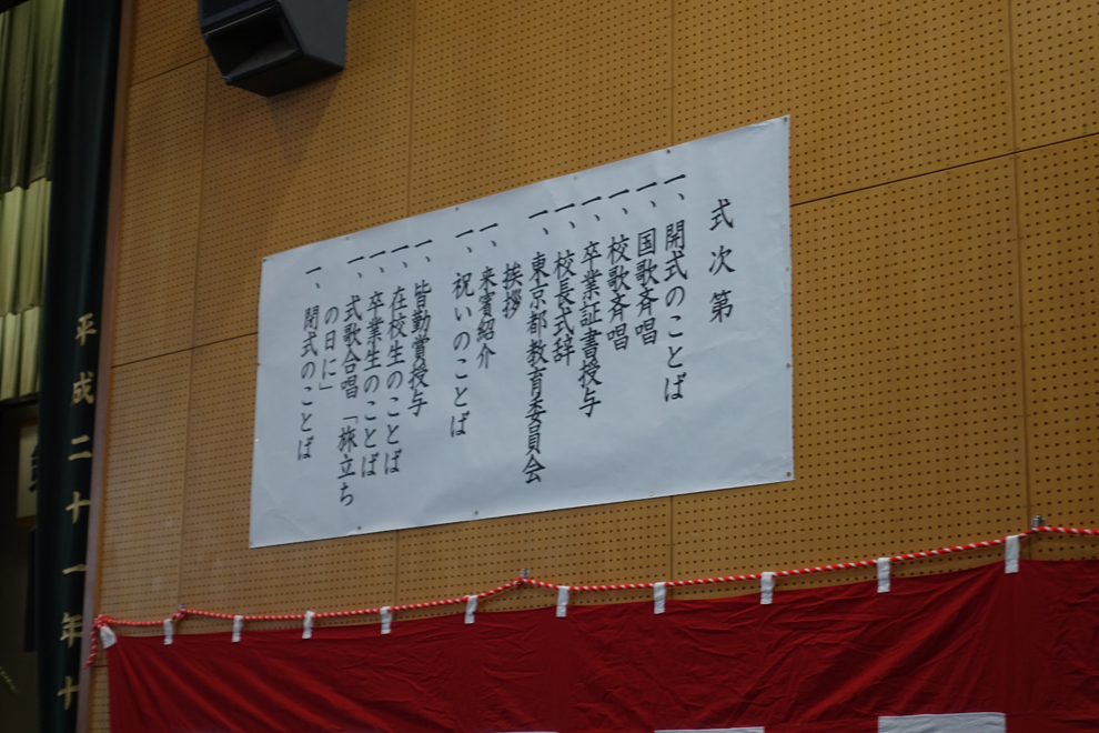 東京都教育委員会からは委員長の木村孟氏が挨拶、高橋校長も本年3月をもって目黒高校を退任されますので、式辞を聞きながら万感胸に迫るものがありました。