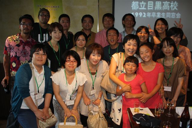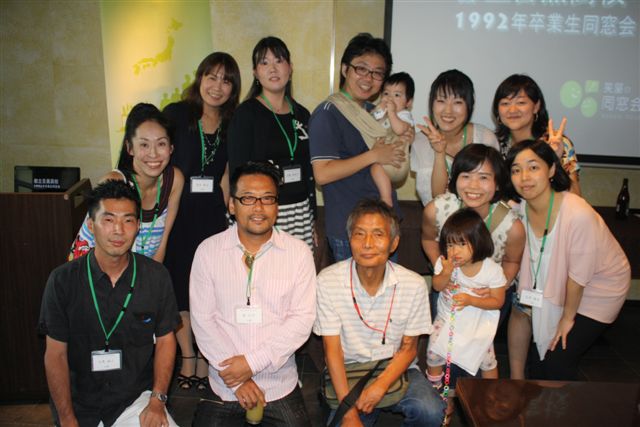平成4(1992)年卒業生同窓会を開催いたしました。 平成24年8月26日(日) 青山星のなる木 参加者:105名 卒業から20年の節目となる今年、卒業後初となる学年全体の同窓会を開催いたしました。 当日はお世話になった担任の先生方4名を含め100名を超える同級生が集まり、おおいに盛り上がりました。 20年ぶりの再会を皆で喜び、語り合いまた新たな交流が生まれました。