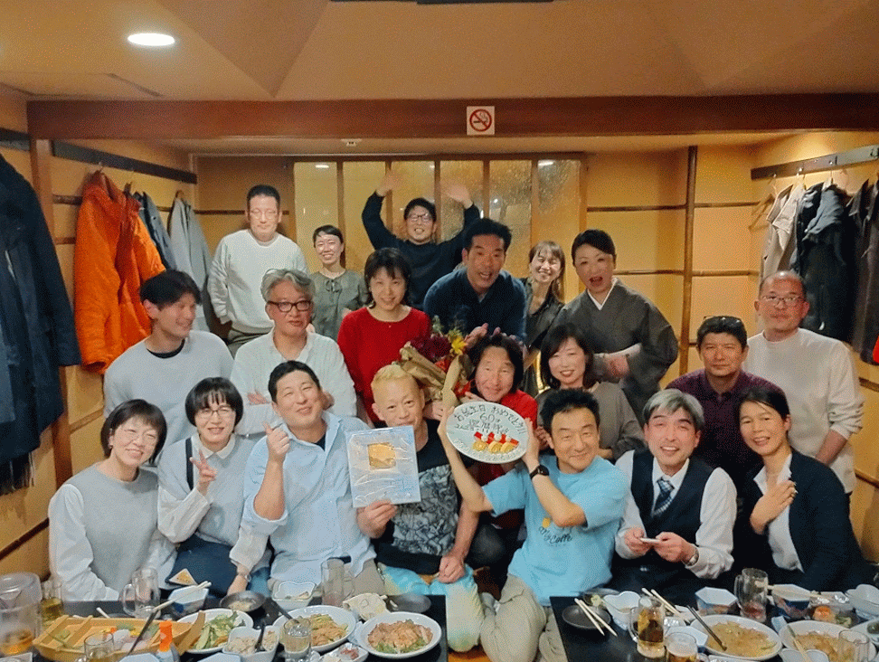 令和5年11月18日、42回生1年5組の19名が集結し、林健二先生還暦の誕生日を新宿にてお祝いしました。 私達が15歳の時、先生は初担任の23歳。生徒1人1人の個性が強く、生意気だった48名をまとめるのは相当大変だったと思います。 久しぶりに再会した60才の先生は、52才の生徒達より若々しくパワフルでした。 みんな高校1年生に戻って昔話に花が咲き大いに盛り上がりました。 林先生これからも元気で長生きしてくださいね。